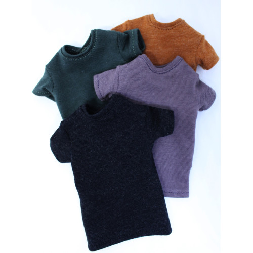 Soft knit fitted tee. Short cap sleeves and crewneck with two snap closures in back. Available in four different colors; deep pumpkin orange, soft heather black, muted forest green, and a muted gray-toned purple. Purchase one, two, or three tees for $16 each or get all four for $60!