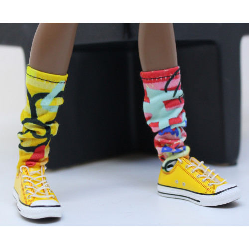 - Yellow plastic 'Converse' style low top shoes. White working laces. Fit flat foot legs really well. Purchased on eBay and added to this set for the same amount paid.